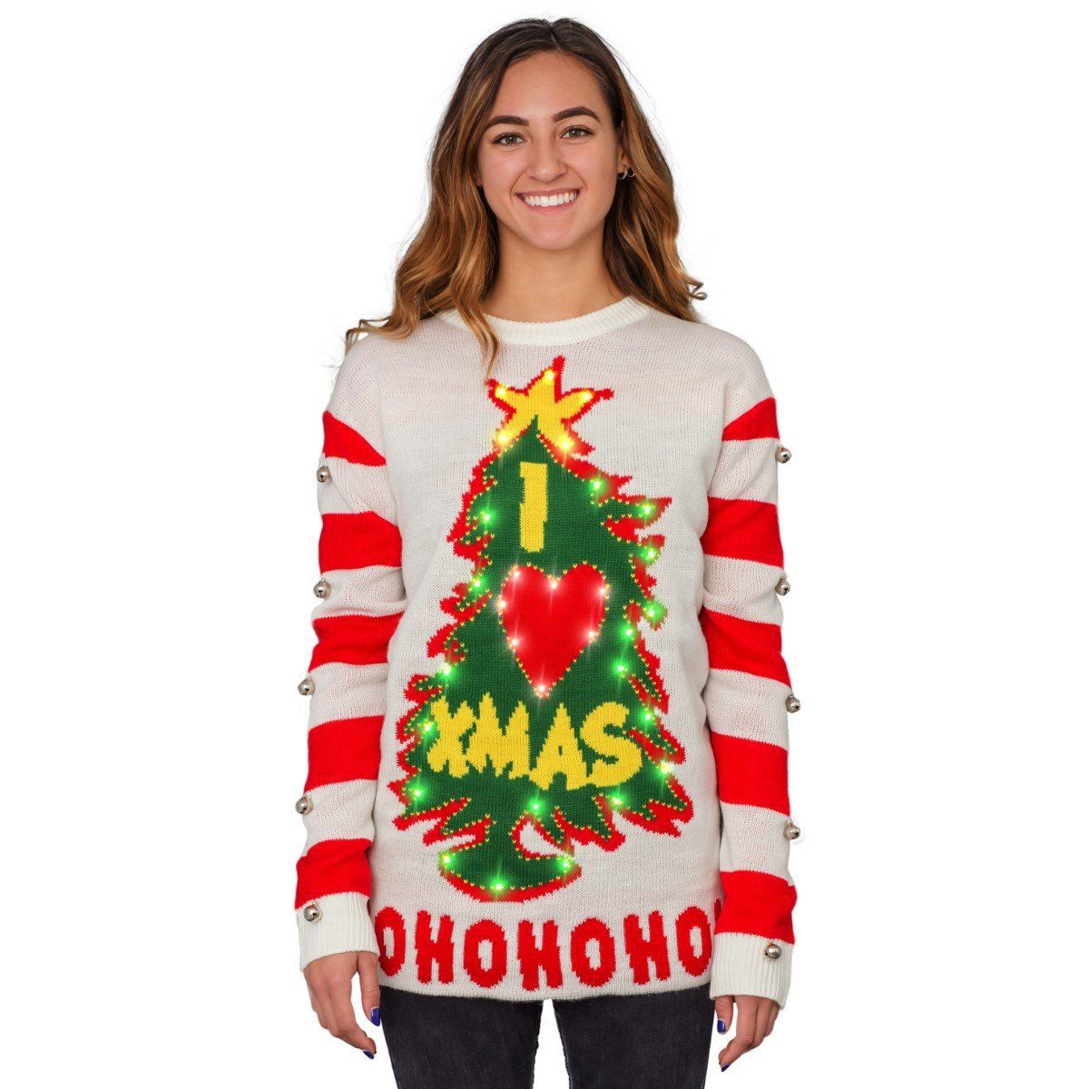 Suéter navideño con campanas europeas y americanas para mujer